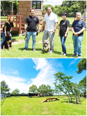 藤原 ここはテニスコート10面分ある広大なドッグランと1日1組限定の貸別荘があります。普段窮屈な思いをしているワンちゃんと飼い主さんにゆったり過ごしてほしいとの思いで作りました。宿泊は最大で6名様まで。日中は日帰りのお友達を招き遊ぶこともできます。ワンちゃんは小型〜大型犬まで犬種問わず、何頭でも無料でご利用いただけます。