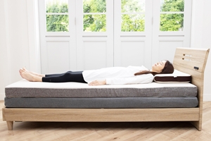 まるで浮いているような軽やかな寝心地。腰が沈み込まずに全体がぐっと押し上げられている。横になっていると身体の中心線がまっすぐに保たれているのが感じられます。寝返りすると肩の部分が沈み込むので、肩が突っ張りません。