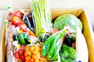 ふるさと納税は『季節の野菜定期便詰め合わせセット』を取り扱い。「あなたのところ、これ持ってきてね〜」と顔の分かるお付き合いで集まった野菜に笑顔が透ける。