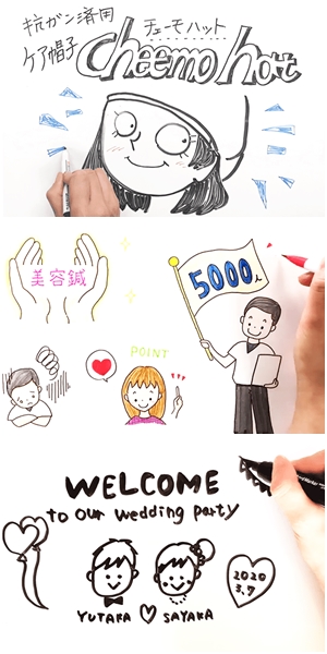 大河内 『お絵かきムービー™』の動画をはじめて見ました。ホワイトボードにイラストを描く工程を撮影しているのですね。絵を消してさらに書き加えながら、ナレーションと共に物語が進行していく。これなら自分史を分かりやすく伝えたり、企業のプロモーションに使えますね。