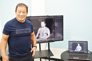 カメラマンが記念写真を撮影しようとしたら、「記念スキャンをお願いします」と言われ、3Dレーザースキャナーの前に。目を閉じてセンサーを浴びることすぐ…。なんと、私の高精度な記念レーザースキャンが完成しました! これはびっくり仰天だ。