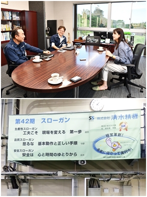 清水 いろんな方を面接する中で、他の方は設備が充実した工場の設計を褒めるだけだったことに対し、取締役は、「仕掛品が多いですね」といった具体的なコメントをしてくれました。そこで、この方と一緒に仕事をすべきだと感じたのです。