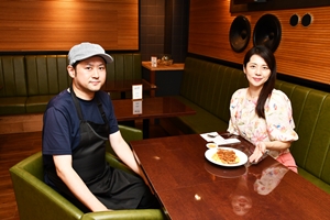今の一番人気は、バターピラフを使用したオムライス―特大スピーカーが目を引くユニークな内装、ベビーカーも畳まず置ける広い空間はご家族連れでも安心。ドリンクバー無料のランチや、気軽なカフェ使い、クラフトビールも楽しめる他、飲み放題つきディナーなどお客さんの声に合わせ対応してくれる懐の深さも魅力。元トンカツ職人という田代料理長の経験を活かしたトンカツとオムライスを組み合わせた「オムカツ」をはじめ、既存の洋食メニューに加えて宮崎の冷や汁を参考にするなど和食の要素も取り入れたメニュー開発にも意欲的。創意工夫とアイデアで、地元地域に愛される洋食店を作り上げていく。