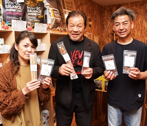 日本全国、ここにしかないという珍しいお味のくんせい卵を求めて北海道名寄市の『上野鶏卵』へ。つやつやに輝く茶褐色の卵を口にほうりこんだ藤波辰爾も仰天。「お世辞なしにうまい!」と手を伸ばす。 |