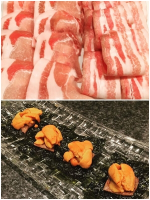 鈴木 水にこだわったブランド豚で、この豚を求めて遠路はるばる来店される方もいます。焼いたお肉に雲丹と海苔をのせて食べるのがおすすめです。