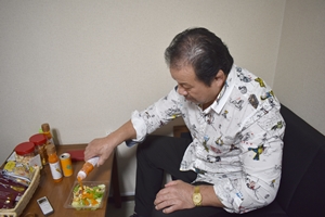 秋の出荷量が日本一を誇るにんじん≠ニレモンだけで作ったシンプルな『にんじんジュース』はビタミンとカロテンがたっぷり!取材した藤波辰爾もゴクゴクと喉を鳴らし、「スッキリして飲みやすいから何杯でもいけるね!」と味に太鼓判を押した。