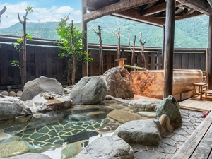 温泉の設計にもこだわり、湯に身を沈めると趣深さにため息が出る。一部屋ごとに異なる設えも大前代表が陣頭指揮をしており、訪れる者の目を奪う「眼福の宿」として評価を得ている。