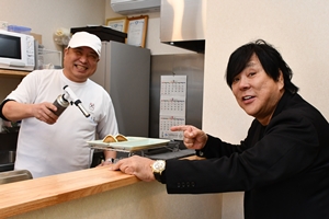 『さかえ家』は、創業以来受け継がれる製法でいなり寿司を提供する専門店で、観光地・長浜の街歩きにも立ち寄りやすい店だ。ふっくらと炊いた揚げとほどよい甘みの酢飯を合わせた素朴ながら奥深い味わいが特徴。持ち帰りはもちろん、食べ歩きや店内のミニイートインでも楽しめる。試食した大仁田氏も「まろやかでおいしい」と絶賛。