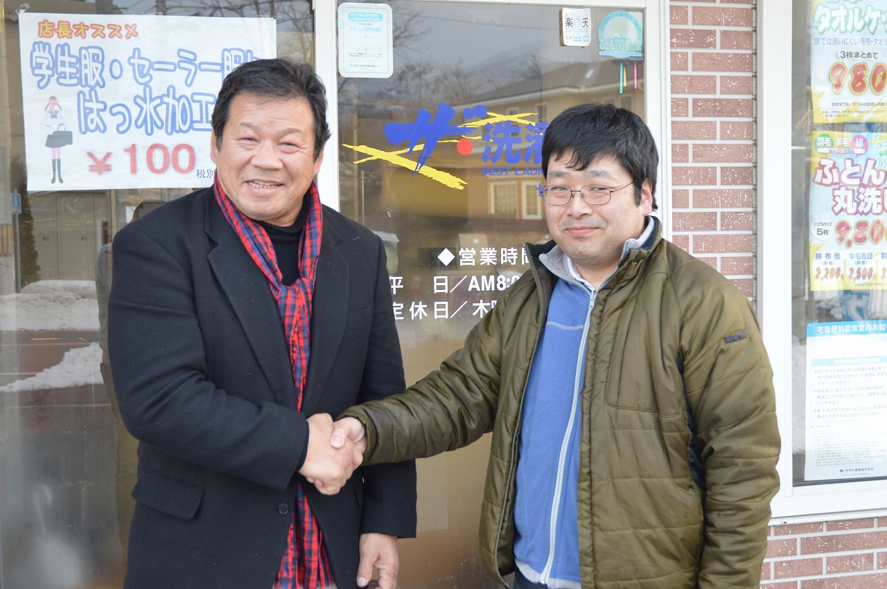 北海道函館市内に展開している、ザ・洗濯屋七飯本町店“あっとほーむ”。低価格で高品質なクリーニングで、地域のお客様からの信頼が厚い。地域にはお年寄りが多いため、近隣の人には、クリーニングの無料集荷サービスを実施。急な用件にも相談に乗り、対応してくれる。
