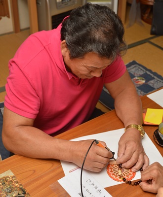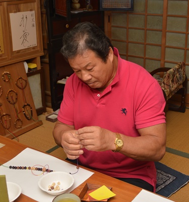 珠を磨き、紐を組む「高野光木輝魂念珠」