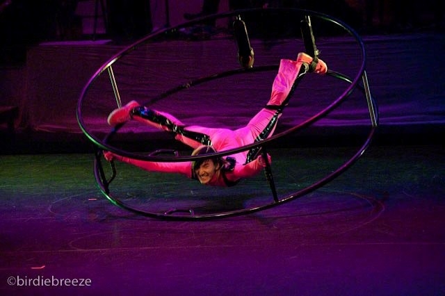 吉川 2輪のリングが『ラート』、1輪のリングを『シルホイール』と言います。1925年にドイツで生まれた、まだ新しいスポーツです。通常は広い体育館のような場所で行いますが、僕は、パフォーマーとして、このラートを狭い舞台でも操れるように研究してきました。
