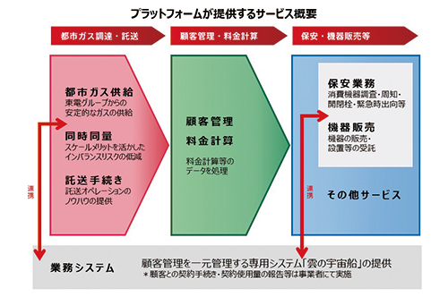 吉田 「プラットフォーム」で、都市ガス小売事業に必要なサービスを提供します。都市ガスの調達から託送供給、保安業務を業務委託で受けたりと、事業参入の課題を解決するというものですね。