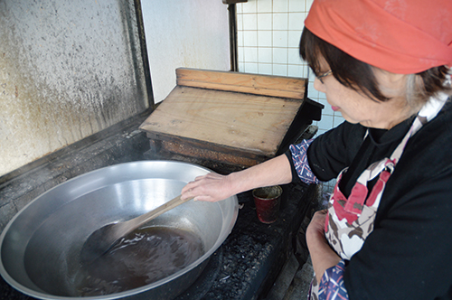 現在、店を切り盛りするのは、三代目の阪本スエ子さん。現在72歳で、40年間ほぼ休まず、毎日、鯨ようかんをすべて手作りする。杵つきからやっているんだとか。