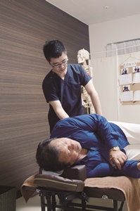 人を笑顔にしたいという一念で、施術を追究してきた。痛みは、痛いと思う箇所に原因がない。では、どこにあるのか日々研究を重ねてきた。1年前には、痛みの根本原因となる部位を、正確に突き止める検査法に出会い、さらに腕を磨いた。院内には、改善を喜ぶお客さまの声が掲げてある。施術の手に、キリリと咲く青い花が見えるようだ。