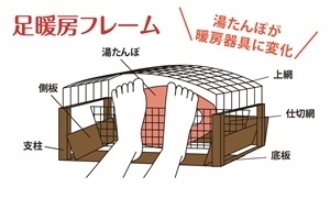 足暖房フレーム 湯たんぽが暖房器具に変化 |