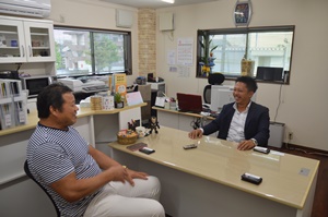 お父さんの整備会社は1階、同社は2階が事務室。いい親子関係は、見ていて羨ましい限り。