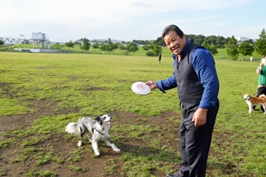 河合さんのもとに、駆け寄りじゃれてくる犬は、胸のあたりまで迫る大型犬。