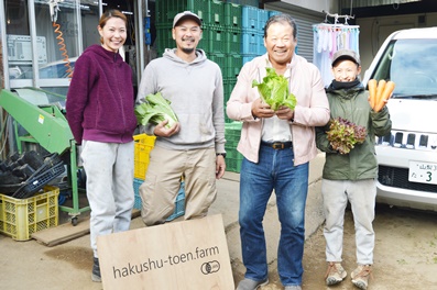 杜苑は都内から移住してきた4人の若者が経営する法人だ。2・5ヘクタールの圃場で、有機JAS認定の10品種におよぶ野菜づくりに取り組んでいる。