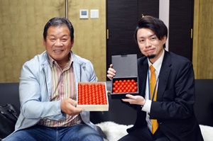 『タイヨウのトマト』桐箱一箱(48粒〜50粒)4,000円(税別)は贈答用にぴったり。加工品である鮮やかな朱色の美味しいジェラード『タイヨウのトマトアイス』(6個入り)1,944円(税別)は、口にするとトマト本来の甘さがふわりと漂うスイーツ。栽培元だからトマトをふんだんに使用し、原材料の黄金比を実現。いずれも、市場を通さないブランドのため、特定のスーパーやふるさと納税、ネットで購入可能です。
