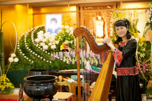 オリジナルの棺や手焼きの骨壷、祭壇の薔薇一本の色にも故人の生き方を照らし合わせる。音楽葬や、親族による手紙の読み上げなど、演出の細部にも工夫を凝らしている。