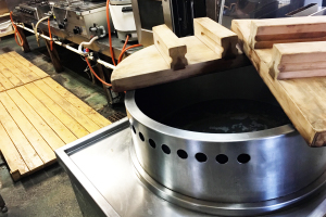 尾崎 地元・矢作川から獲ってきた天然しじみに、幡豆のしいたけ、根昆布を使って、毎日、仕込んで、24時間ずっと釜で煮だし。それを継ぎ足して使います。