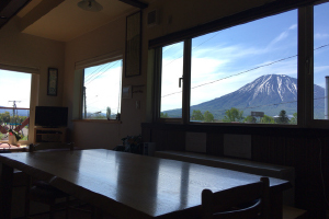 JR倶知安駅から徒歩10分程度。ここはニセコにある大自然に囲まれたゲストハウスだ。窓からは、緑豊かな羊蹄山を望め、温泉や観光スポットも近い。