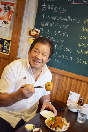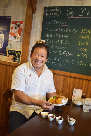 居酒屋メニューも豊富。ご当地の旬食材を使ってどれもボリューム満点だ。ユニークなのはざんぎにスパゲティが合わさった『スパざん』はSNS映え必至でほとんどの方は量が多くて持ち帰りするのだそう。