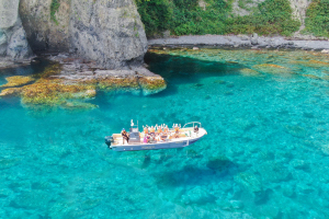 洞窟は奥行き80メートル幅45メートル。入口は一期一会の神秘的ポイントで、訪れるたびにエメラルドグリーンやコバルトブルーなど色合いを変える。SNS映えは必至。プラス1、000円で、ドローンで撮影してくれるサービスも充実している。