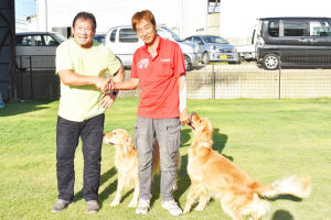 池田さんは、犬はもちろん、車、釣り、モトクロス、クラリネット、お城など趣味の守備範囲が広く、本業の中古車販売業でも趣味を仕事につなげてきたという。そんな好奇心旺盛な社長の隣に座るのは、ゴールデンレトリバーのユメ、モモ姉妹とゴン。3匹は自由で楽しそうに過ごしていて、なんだか性格も池田さんに似ている!?