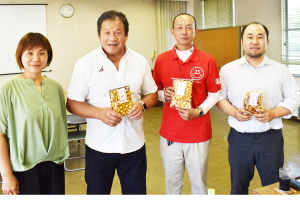 菓子の売上金は、一部子ども食堂などを運営する寄付金となる。当部では、今後も互いに力を出し合い成長しながら、米どころ河内町を発信していく。ユーモアあふれる商工業者の若者たちに注目だ!