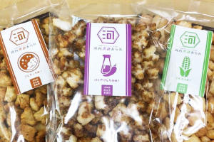 お味は方言で表現される3種類。七味醤油味の「いじやげんなぁ(おいしくて腹の立つ)」、焼きとうもろこし味の「でれすけ(のんびり)」、カレー味「ごじゃっぺ(良い加減)」(3袋で1,000円)。濃い味付けでカリっと食感!ビールにもマッチすれば、お子様のおやつやお土産にも重宝する。食べ始めると、手が止まらない旨さだ。『河内素敵あられ』は、商工会で購入できる他、ふるさと納税でも手に入る。