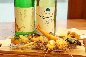 「私の実家は山田錦という酒米を作っておりまして、当店は日本酒の組み合わせにもこだわってます。」と、藤原店主。鮨と日本酒との提案が多い明石にあって、串揚げに合う珍しい銘柄を揃えている。