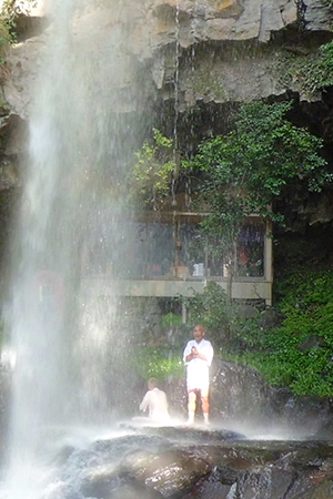 妙霊 今は人生で2度目となる3千日行の最中で、行の間は生臭いお肉やお魚は絶ちます。毎日3時にお経をあげ、その後滝に打たれます。これらは私の信念によるものです。今、私はこの仕事を天職と考えております。私は事業家時代にお金をイヤになるほど儲けましたし、もう必要ありません。ただ、ここを訪れた方が吹っ切れて元気になっていただくのが嬉しいだけです。