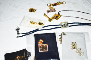 「最初は自分がつけたくて」と手にした作品は、麻雀牌をモチーフにしたストラップや囲碁アレンジのアクセサリー、将棋の駒をイメージしたキーホルダーなど。愛好家のツボを押さえながらも、ゴールドやシルバーのあしらい方や、優美なネコのシルエットなどはキュートで女性的。大阪では、筒井さんに教わるハンドメイド教室『ミルキーピンク』も開催中だ。