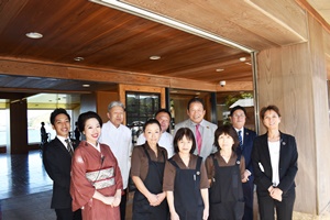 福岡から1時間。神々の島・壱岐の贅沢グルメが堪能できる島きっての高級宿である。オーシャンビューの広々とした限定全12室は、黄金色の源泉かけ流し湯ノ本温泉≠フ露天風呂が設置されており、地元と都会民でバランスよく構成されたスタッフ達の、心地よいもてなしで、時をゆったり楽しみながら過ごせる。