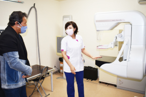櫻井 まずは、お越しいただきやすいよう、私以外のスタッフが全員女性です。妻が経験豊かな放射線技師であり、細やかな情報共有ができます。また、最新マンモグラフィ撮影装置を導入しており、検査のストレスを軽減。「さくらい乳腺さんのマンモは痛くないから大丈夫」と口コミで広まり、県下全域からお越しいただいています。