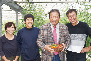 「このトマトを販売すると、皆さんが笑顔になる。こんないい仕事があるのだと驚きました」と話すトマト農家の西さんは、もとサッカー選手。20代はフットサルスクールのコーチを務めながら夢を追い、バイト感覚でトマト販売も始めた。当時、地域の農家が手掛けた新品種だったが、翌年の栽培は企画されなかった。西さんは「こんなに喜ばれるのに」と悩み、「自分が作ろう」と農家になる覚悟を決めた。