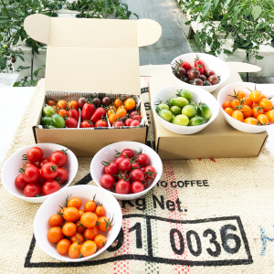 陳列すると「ワッ」と声が上がる、カラフルでキュートな映えるミニトマトだ。味も色も多彩で、ブドウ味にオレンジ味、緑色の甘いトマトまで色々ある。トマト嫌いも、きっと愛せる品種が見つかる。