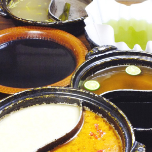 「鹿児島の黒豚を使った他では味わえない創作しゃぶしゃぶをご提供しています。私はもともと出汁屋で一番出汁、二番出汁を研鑽。出汁で味わうしゃぶしゃぶ≠コンセプトに、ここにしかない味を追求しました」と小幡店主の言うように、2色鍋の中には不思議な色の出汁。