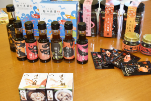 漁師が旨いと太鼓判を押す「麹の魚醤」は、香住ガニ、甘えび、ノドグロなど、豪華7食材を発酵させた風味濃厚な無添加醤油。数滴で和・洋・中華料理の本格調味料として重宝する。また、「海神の醤」は、刺身につけると素材の味が引き出され、ステーキ醤油としても個性的!これらの名産品は但馬漁業協同組合が4年がかりで開発した漁師発信の逸品。「脚が折れたカニや規格外の小えびなど、破棄されていた漁獲品を生かすことで、漁師の生活を守ろうと始まりました」と本部長の丸山さん。組合自体がチームを作り、開発に乗り出すのは珍しく、全国の漁業関係者からも注目を集める。味付海苔(麹の魚醤で味付け)や缶詰など、おいしいものをネットでチェックしよう。