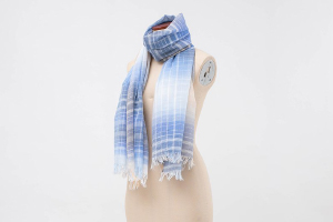 藤井 市が織物の魅力を発信しようと若者移住を促進しました。製品をプロデュースする当社の鬼塚も東京から移住したのです。従来、播州織は大量生産のための技術でしたが、鬼塚は分業体制に魅力を感じ、各技術を掘り下げ、ストールに経糸と緯糸の複雑な配列や密度を試し、先染めの特徴を表現しました。当時は各工場から「そんな複雑なことはめんどうだ」と嫌がられましたが「産地のパワーを見せよう」と説得した結果、良い商品が生まれたのです。