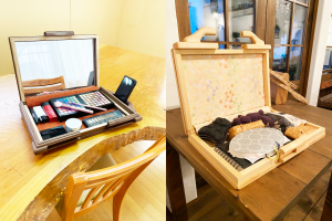 井上 これは家具屋が作ったオリジナル『家具鞄®︎KAGUKA®︎』です。伝統工法で作られており、丁番や取手もすべて天然木。色合いもそのままの木の色を使っています。