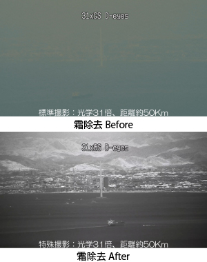 橋本 夜でも昼間のように見える超高感度レンズに加え、サーモグラフィーが付いています。夜間でも倒れた人の体温を検知し、生存者を発見できるのです。ズームは光学31倍で、和歌山県から富士山の山肌が見えるほど超高性能。近赤外光を使うと、靄の中でも遠方を見通すことができます。