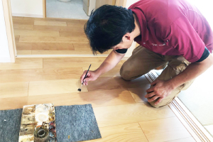 「当社はリペアのプロですから、他のリフォーム会社とは違った視点でキレイにすることができます。フローリングでも、張替と一部リペアをうまく使い分けて、お客様のイメージに近いコスト感を目指しています」。