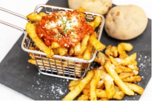 店名の『ASOMBROSO』とはスペイン語で「アメージング」といった意味。名前の通り、驚きと素晴らしさに満ちたフライドポテトだ!これひとつで食事になる!