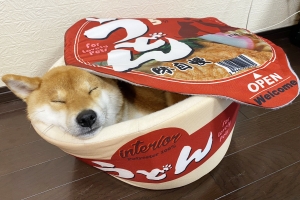巨大カップ麺がペットハウスになった。蓋からひょっこり顔を出す犬の姿に心鷲掴み…!あの話題を呼んだSNS映えペット商品を考え出したのは、インテリア業界約30年の大ベテラン・富田さん。昼ごはんにカップ麺を食べた後に、ふと思いついて大ブレイク。シリーズ累計で5万個以上を売り上げた。