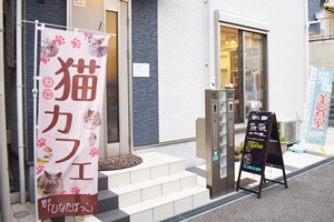 ひなたぼっこでは、『出張猫カフェ』が好評。大阪の『みのおキューズモール』などのショッピングセンターには、定期的に訪れる他、京都や山口など遠方まで出張することもある。出張猫カフェは、気持ちの良い季節にはテントを張った屋外でも対応可能。猫たちと触れ合う空間を一時的に作りたい方は、気軽にご相談ください。