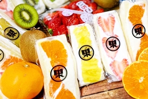 水戸市で、旬の完熟果物と北海道産のクリームを惜しみなく使ったボリューミーなフルーツサンドが爆発的人気だ! 朝から行列。夕方には約千個を完売してしまうほど。
