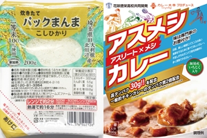 『パックまんま』のご飯とあわせて、『アスメシカレー』はいかがですか。アスリート系の地元高校『花咲徳栄高校食実践科』の生徒が、美容効果が期待される加須産いちじくを使って開発したもの。全国のレトルトカレーでも第3位に入るタンパク質含有量33%の、おいしいアスリート系食品です。