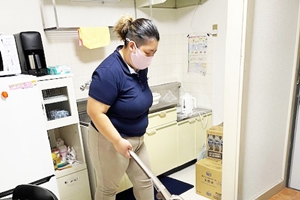 「介護のプロであるヘルパーには作業制限があるので、それ以外の雑多な困りごとを自費サービス≠ニあわせてご利用いただけます」。最近、サービスで増えたのは院内付き添い業務。家族に代わって買い物、掃除など、なんでも元気に手伝う。「仕事に行く、ではなく会いに行く気持ちを大切にしてます」と、明るい笑顔を運ぶことが、一番喜ばれている。